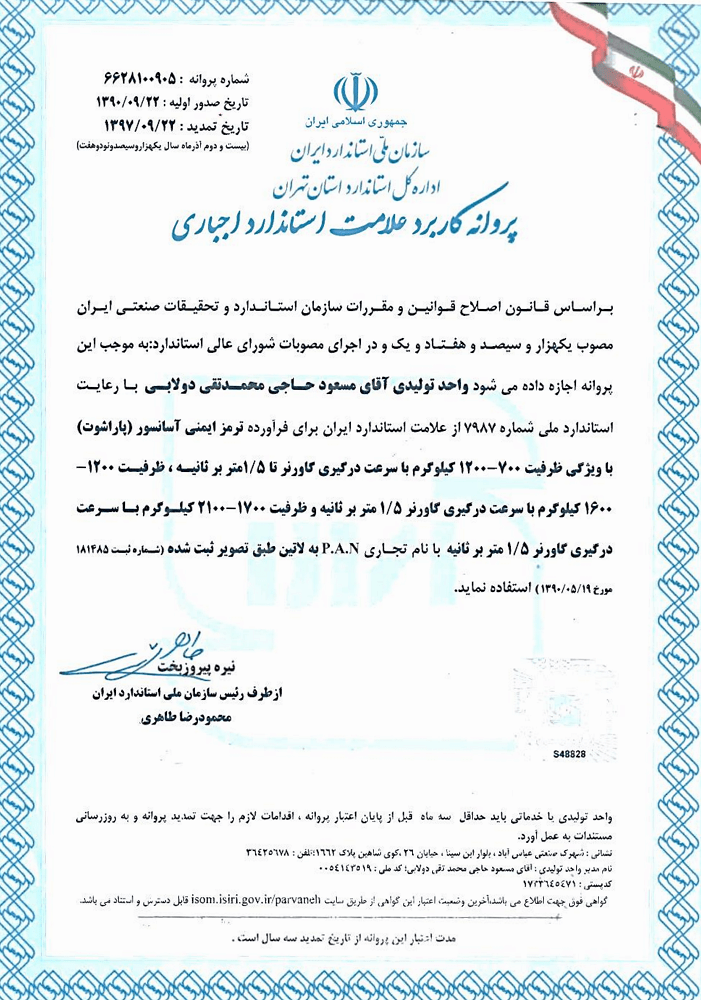 | استاندارد | EN81 و استاندارد ملی ایران |