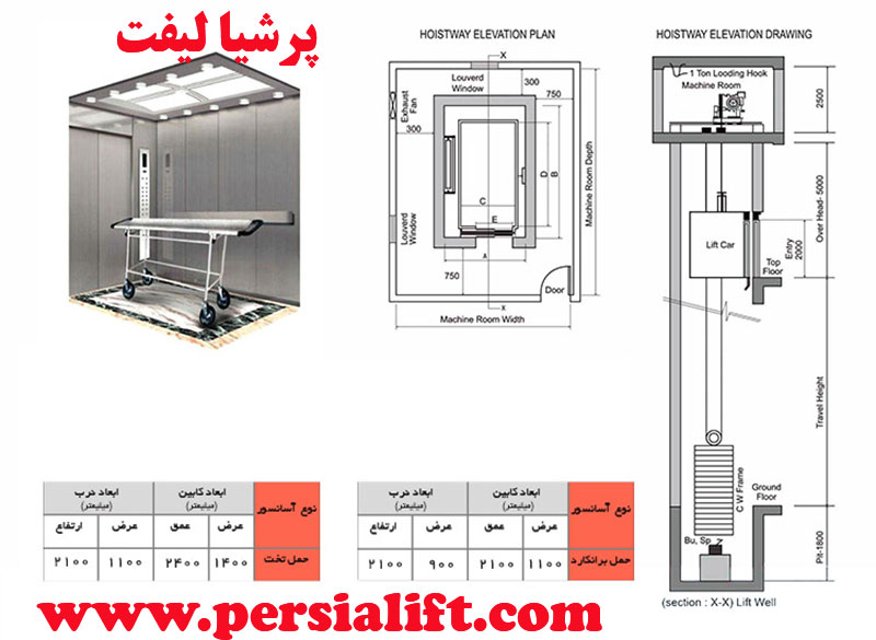 طراحی آسانسور بیمارستانی یا برانکارد بر